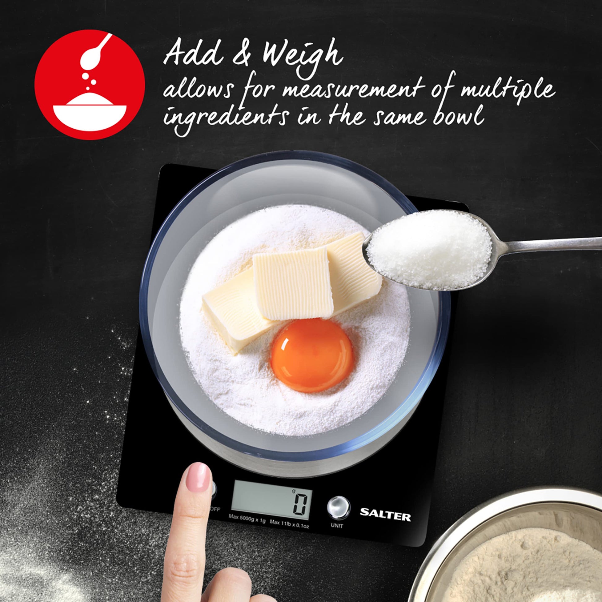 - Effortlessly weigh your favorite ingredients with Salter's electronic platform scale, perfect for any kitchen