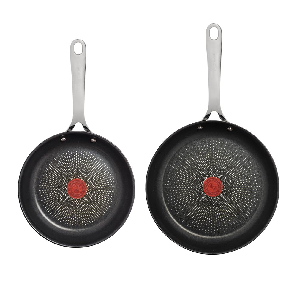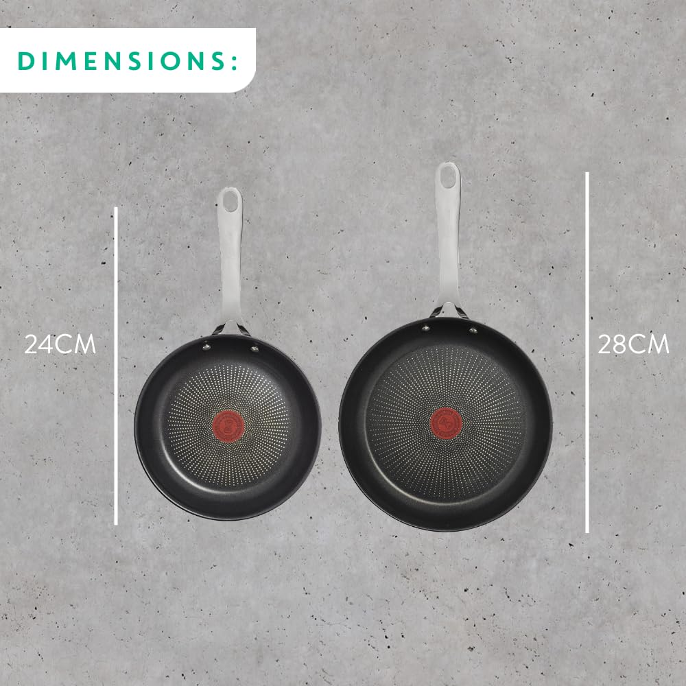 Tefal Jamie Oliver Cook's Direct Stainless Steel Pan Set, 24 & 28cm Frying Pans, Non-Stick Coating, Heat Indicator, Riveted Safe-Grip Handle, Induction Hob Compatible, E304S24